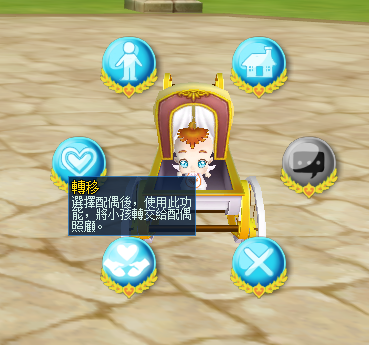當寶寶出生進入嬰兒期後,經由寶寶系統的【轉移】功能,爸爸也可以帶著寶寶趴趴走。